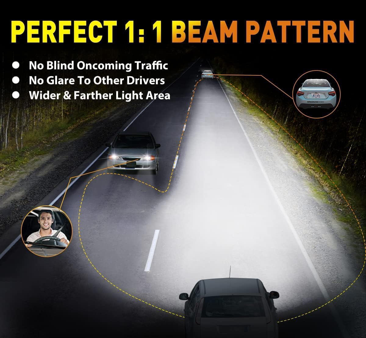 Enhanced beam pattern: although brighter than standard halogen bulbs, the light is focused down road so oncoming traffic will not be blinded, and there are no dark spots or shadow areas.