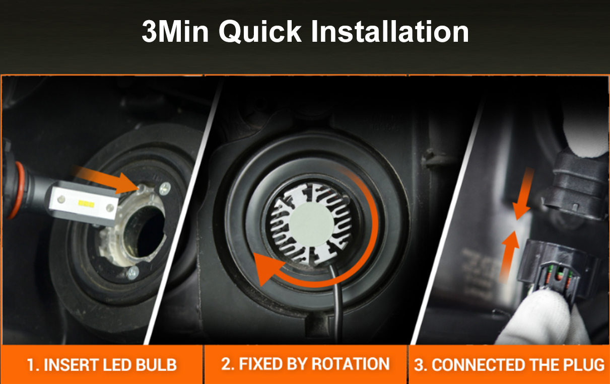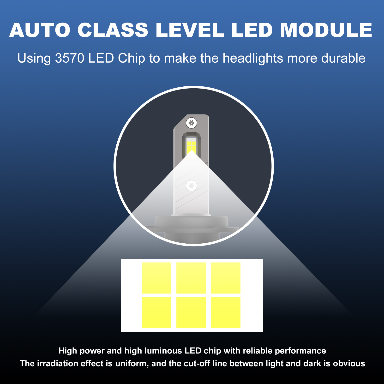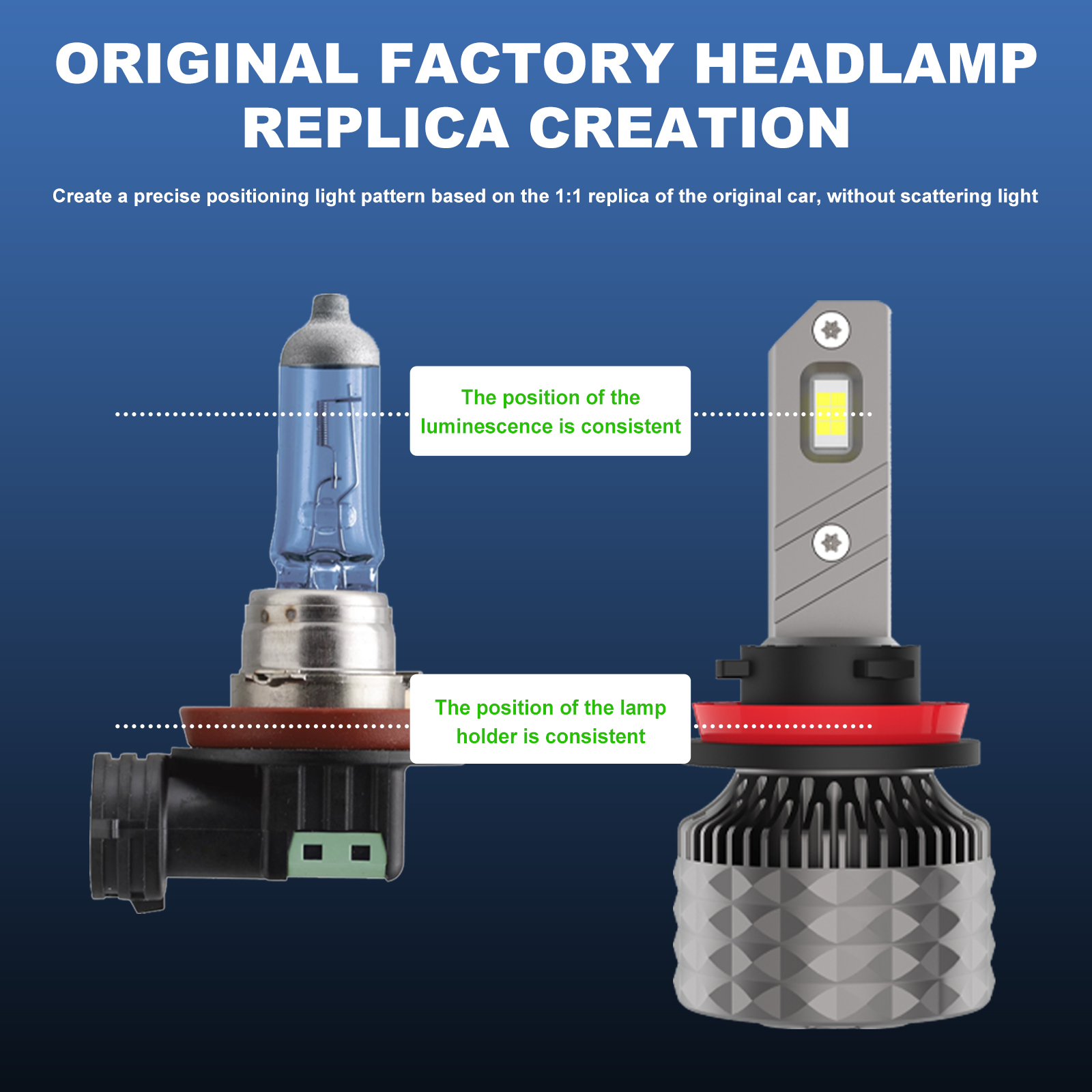 Plug N Play in 3 Minutes: Designed to fit seamlessly into your existing housing and factory socket without any modifications, The bulbs feature a 1:1 size design with origin bulbs. The non-polarized design and compact structure eliminate the need for oversized bases or additional drivers, making installation quick and hassle-free