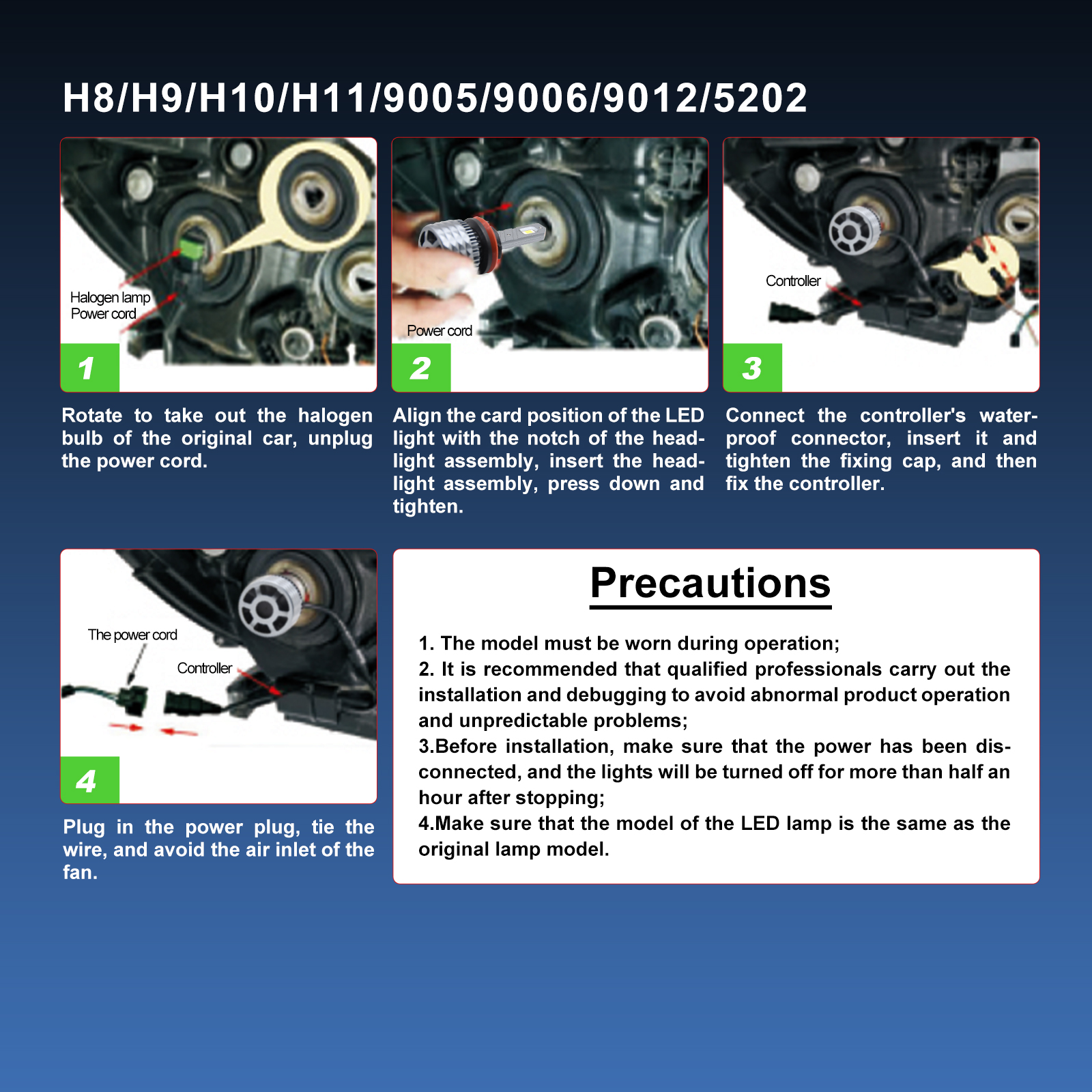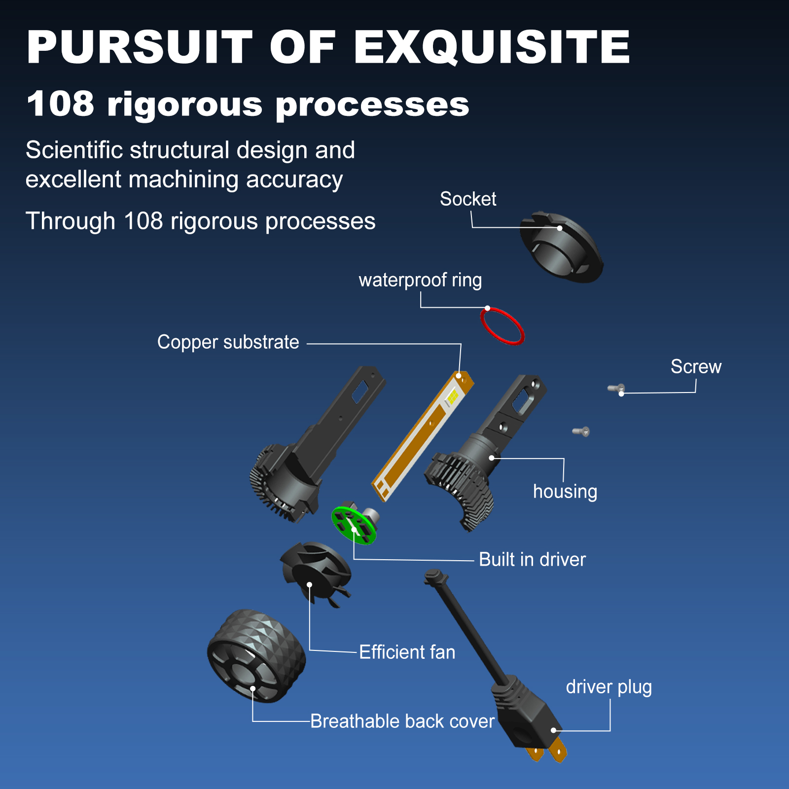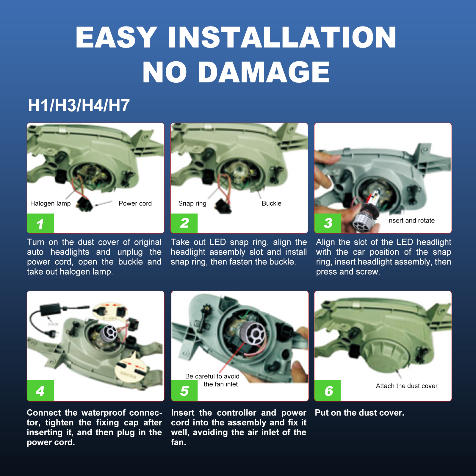 Plug N Play in 3 Minutes: Designed to fit seamlessly into your existing housing and factory socket without any modifications, The bulbs feature a 1:1 size design with origin bulbs. The non-polarized design and compact structure eliminate the need for oversized bases or additional drivers, making installation quick and hassle-free