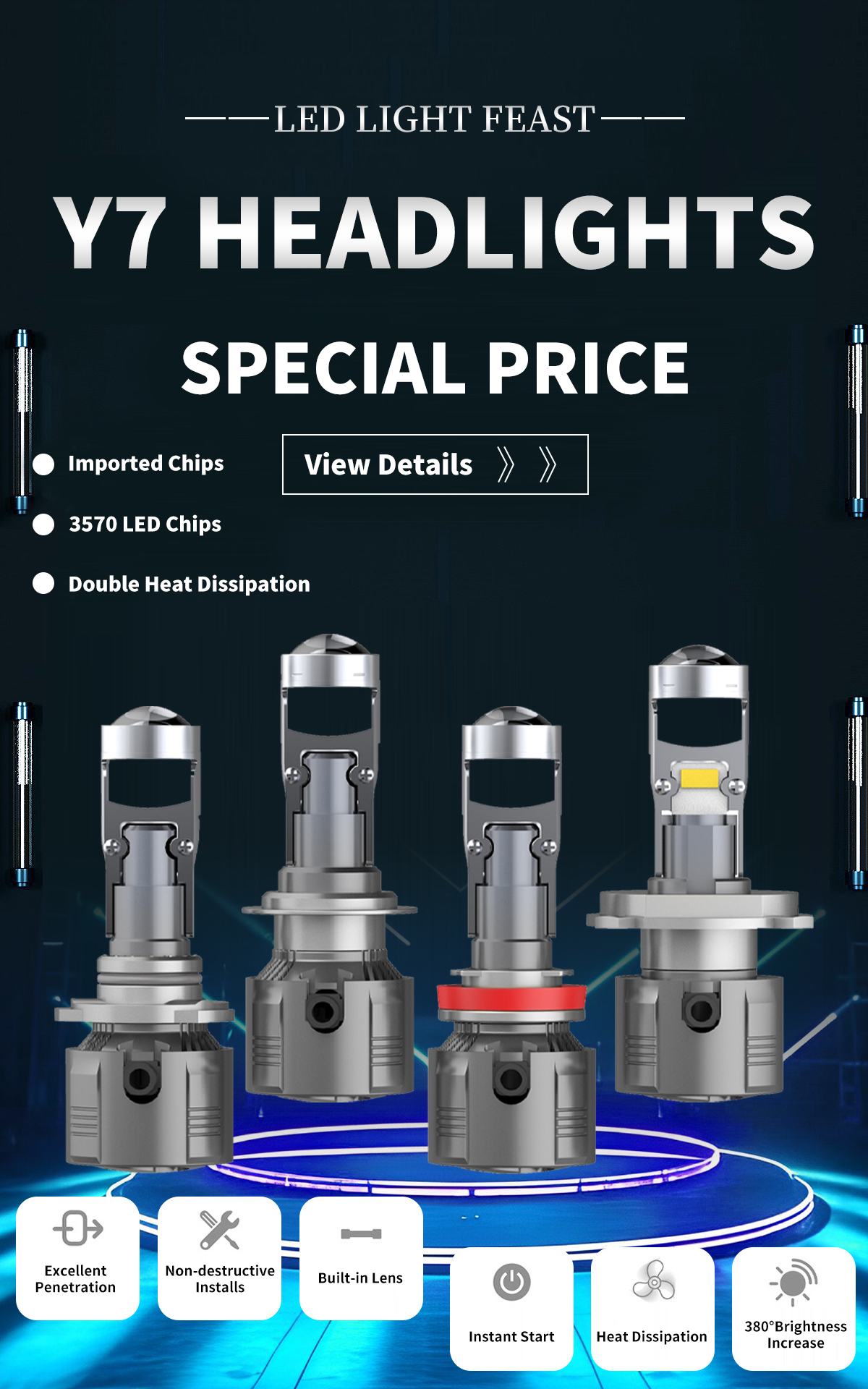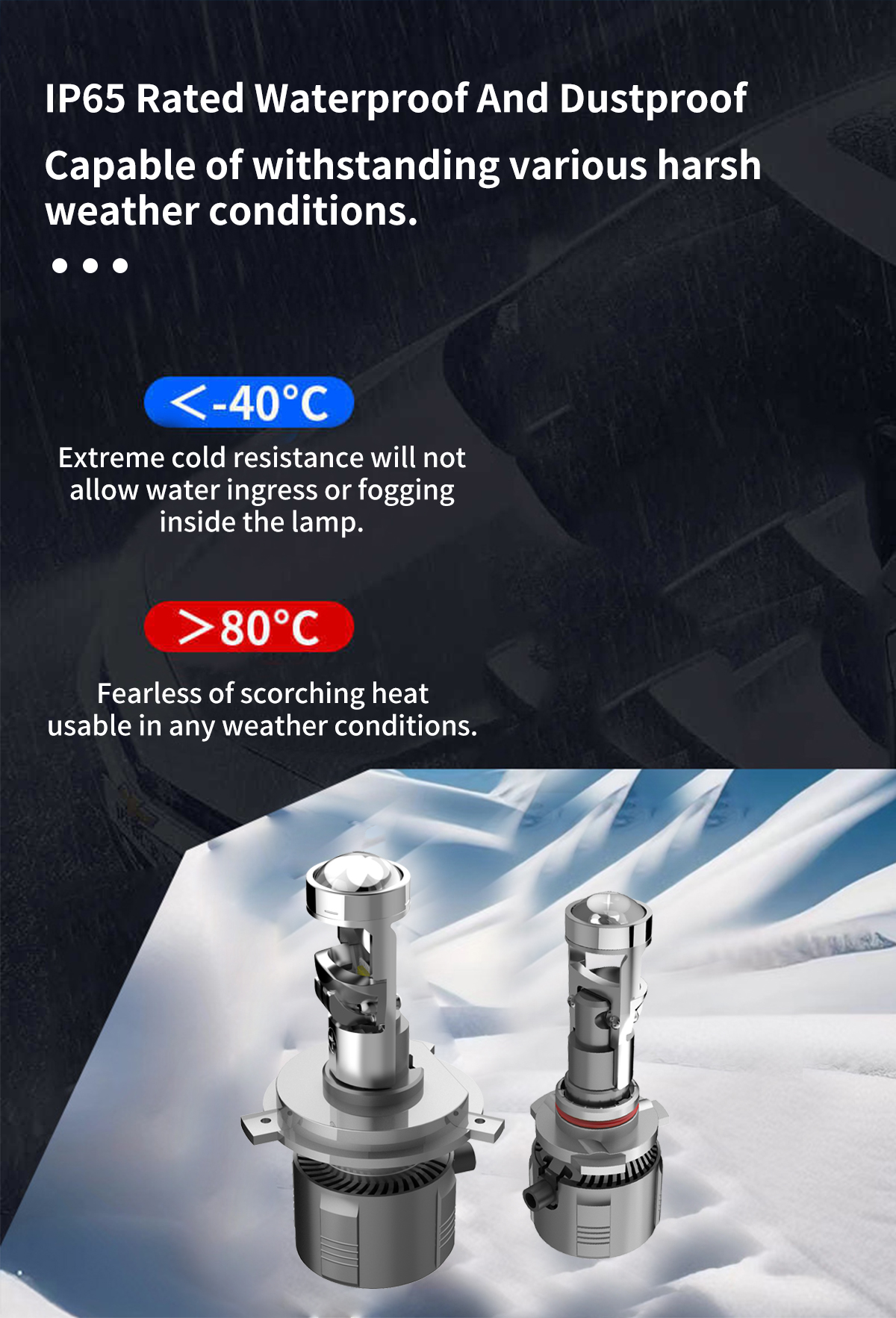 Plug N Play in 3 Minutes: Designed to fit seamlessly into your existing housing and factory socket without any modifications, The bulbs feature a 1:1 size design with origin bulbs. The non-polarized design and compact structure eliminate the need for oversized bases or additional drivers, making installation quick and hassle-free